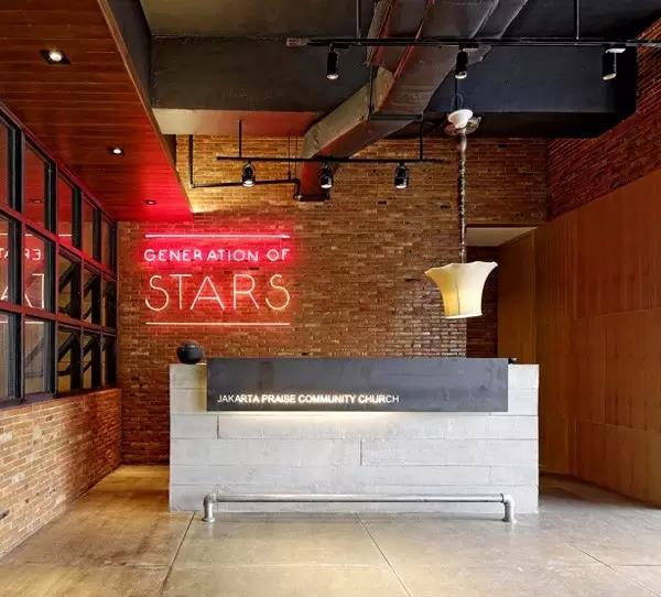 有創(chuàng)意的公司前廳LOGO墻,裸磚元素工藝前臺背景墻