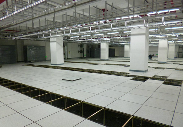 為了鋪設(shè)電源線及信號線方便,地面采用全鋼抗靜電的活動地板,其系統(tǒng)電阻應(yīng)在1×105歐姆至1×108歐姆之間。目前活動地板有鋁合金、鋼、鋁-木、鋼-木,尺寸為500×500mm和600×600mm,厚度有20mm、35mm和40mm?;顒拥匕暹€專門配有帶走線口的異形地板。放置活動地板的地面要平整、光滑,水泥地面或水磨石地面均可。機房內(nèi)切忌鋪地毯,一是容易積灰,二是容易產(chǎn)生靜電。