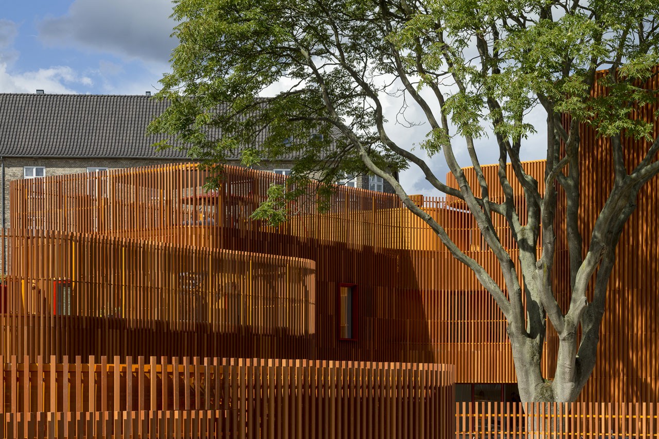 COBE想借此項目創(chuàng)建一個世界級的日間護理中心。一個兒童成長的最佳環(huán)境,可以激發(fā)兒童的學習能力和創(chuàng)造能力。坐落于哥本哈根一處主要由養(yǎng)老院和老年公寓所在的歷史悠久的地方,項目確保了歷史區(qū)域與新建筑的一致性。