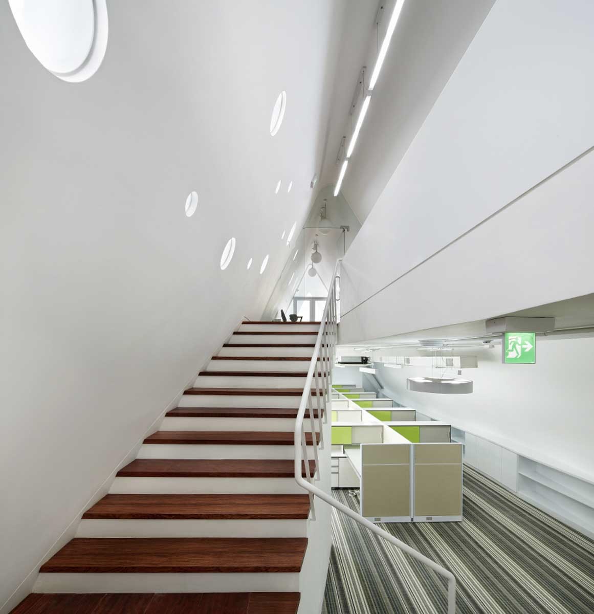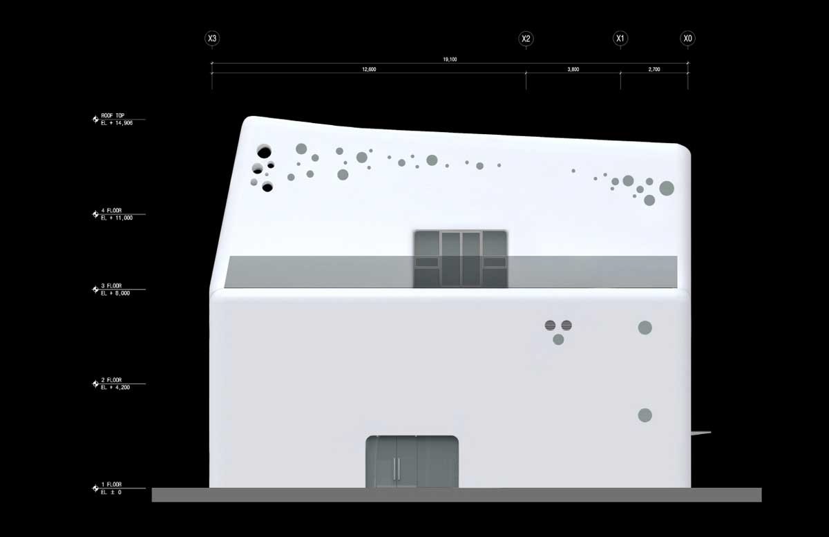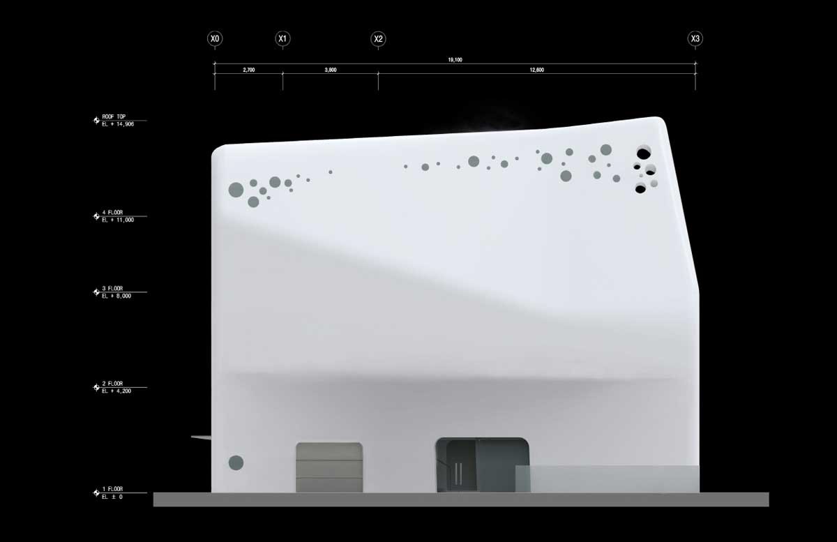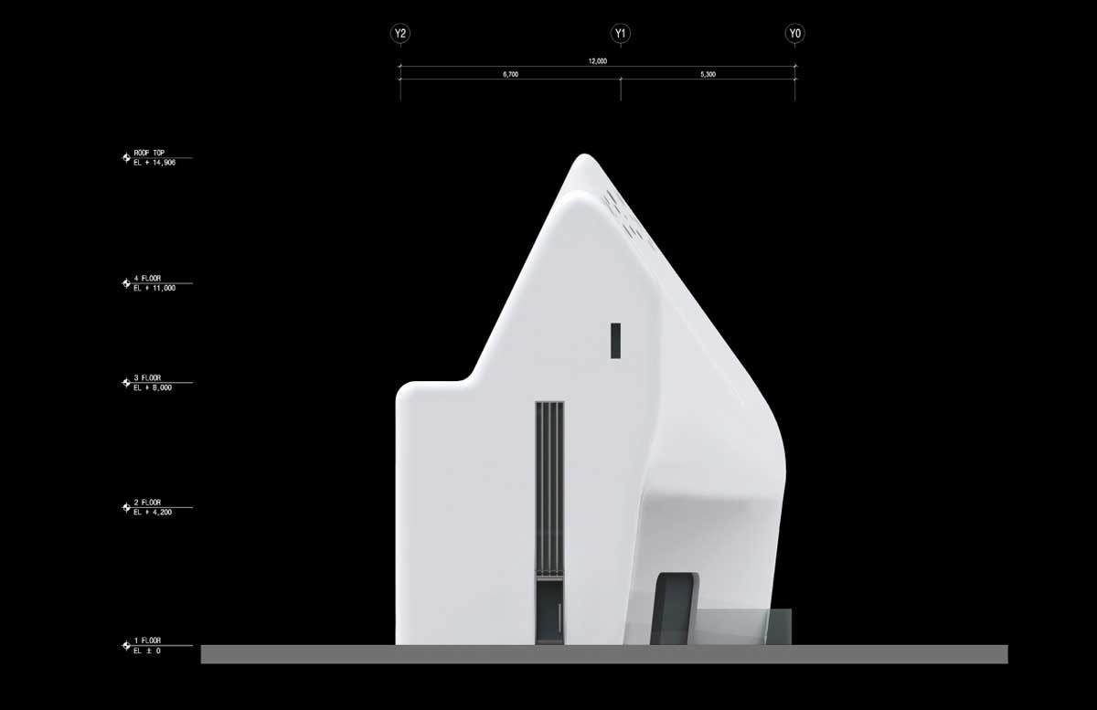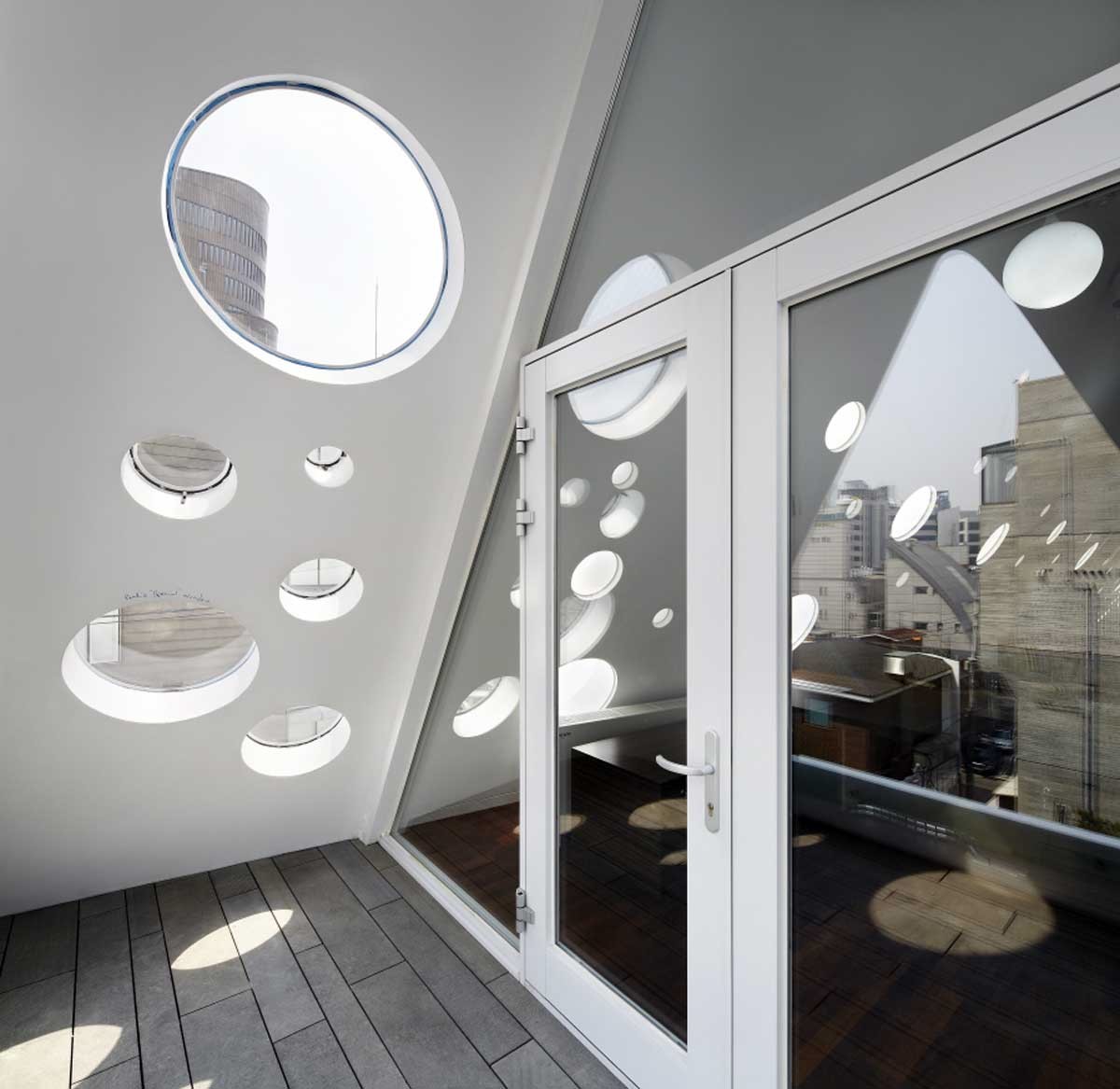由于受到容積率、日照等條件限制,建筑師不得不通過(guò)圓形加工、切割或連接等設(shè)計(jì)手法,創(chuàng)建一個(gè)混凝土的殼狀結(jié)構(gòu),在法定條件內(nèi)將容積率最大化,最終能加建一層,與周邊其他建筑相比該項(xiàng)目獲得了更寬敞的建筑面積。