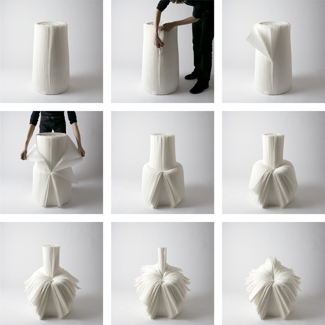 佐藤提出的方案是將很多用過的褶皺紙加工成筒狀紙卷,然后剪開一個(gè)口,讓他變成一把椅子,做出來的成品就像一棵白菜放在座子上,什么也不做,就站穩(wěn)了。用戶可以根據(jù)自己的喜好親自選擇形狀。將筒狀紙自由地剪裁使用,做出完全屬于自己的”料理”。如果您有辦公室設(shè)計(jì)裝修方面的需求,請您撥打13910063165,若者添加微13910063165,熱情歡迎您的來電,詳情咨詢本網(wǎng)站:www.yingweitemall.com