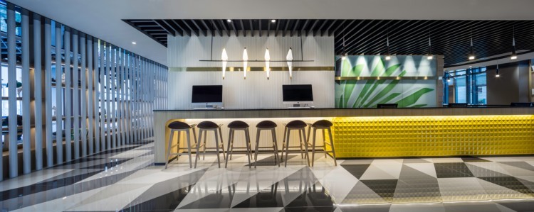 “每個設(shè)計(jì)的誕生既來自于他們所熱愛的生活,來自于生活的靈感和激情,又來自人們改造現(xiàn)有生活的愿望?!?——《設(shè)計(jì)改變生活》 ▲ 接待臺 酒店大堂的接待區(qū)域,鮮明的色彩和層次分明的造型營造出視覺中心,引導(dǎo)著往來的客人匯聚于此,從而拉近與客戶彼此的距離,提高客戶的親切感和互動性。 ▲ 等候休息區(qū) 開放式布局打破了傳統(tǒng)酒店封閉的空間格局。樹形景觀的出現(xiàn)不僅完美地劃分了空間功能性,更給用餐環(huán)境帶來了花前月下般的溫情與浪漫。 ▲ 餐廳 餐廳頂部的巨大空間,化繁為簡,讓陽光從一整面的玻璃窗外散落下來。伴隨日出而作,日落而息,享用著熱騰騰的咖啡、精美的小食以及各色飲品,悠然地打發(fā)著旅行中的閑散時光。 ▲ 樂享區(qū) 對于樂享區(qū),設(shè)計(jì)師更加注重其主題性和故事性。孩子們在彩色的游樂區(qū)嬉笑打鬧,青年男女在閑暇之余來一局桌球,中年人則在榻榻米席地而坐,淺嘗拙飲——這種“時尚共享”的理念將為酒店贏得更多時尚消費(fèi)者的青睞。