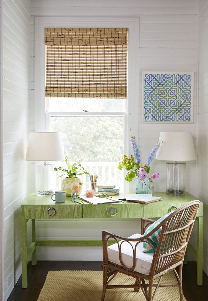 1:如果辦公室有大窗戶,可以讓它們暴露在外,帶來一些戶外色彩,也許綠色和藍色的混合會是你喜歡的;