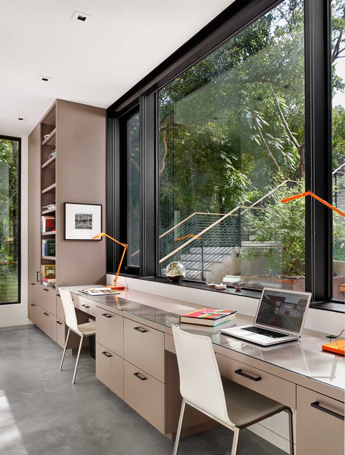 充足的自然光非常重要,特別是在辦公室工作時,這就是為什么辦公桌應該盡可能在窗前,這款全高窗戶不僅可以提供光線,還可以提供美妙的景色,并為辦公室提供了絕佳的背景 。